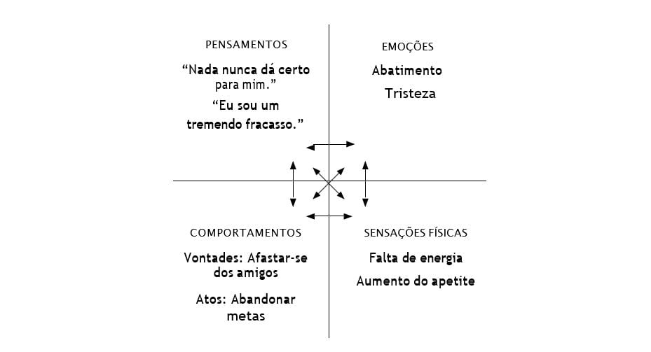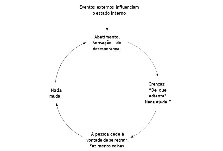 - Todos esses elementos influenciam uns aos outros. Isso nos mostra como podemos cair em uma espiral descendente de desânimo, ou até de depressão.